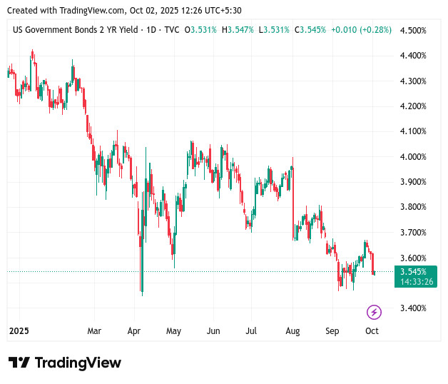 そして今、2年物国債の金利はどうなっているか。チャートは次のようになっている。