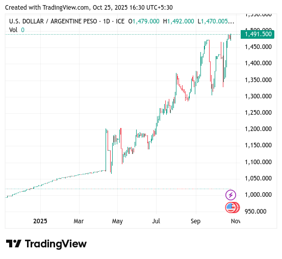 下落するアルゼンチンペソ